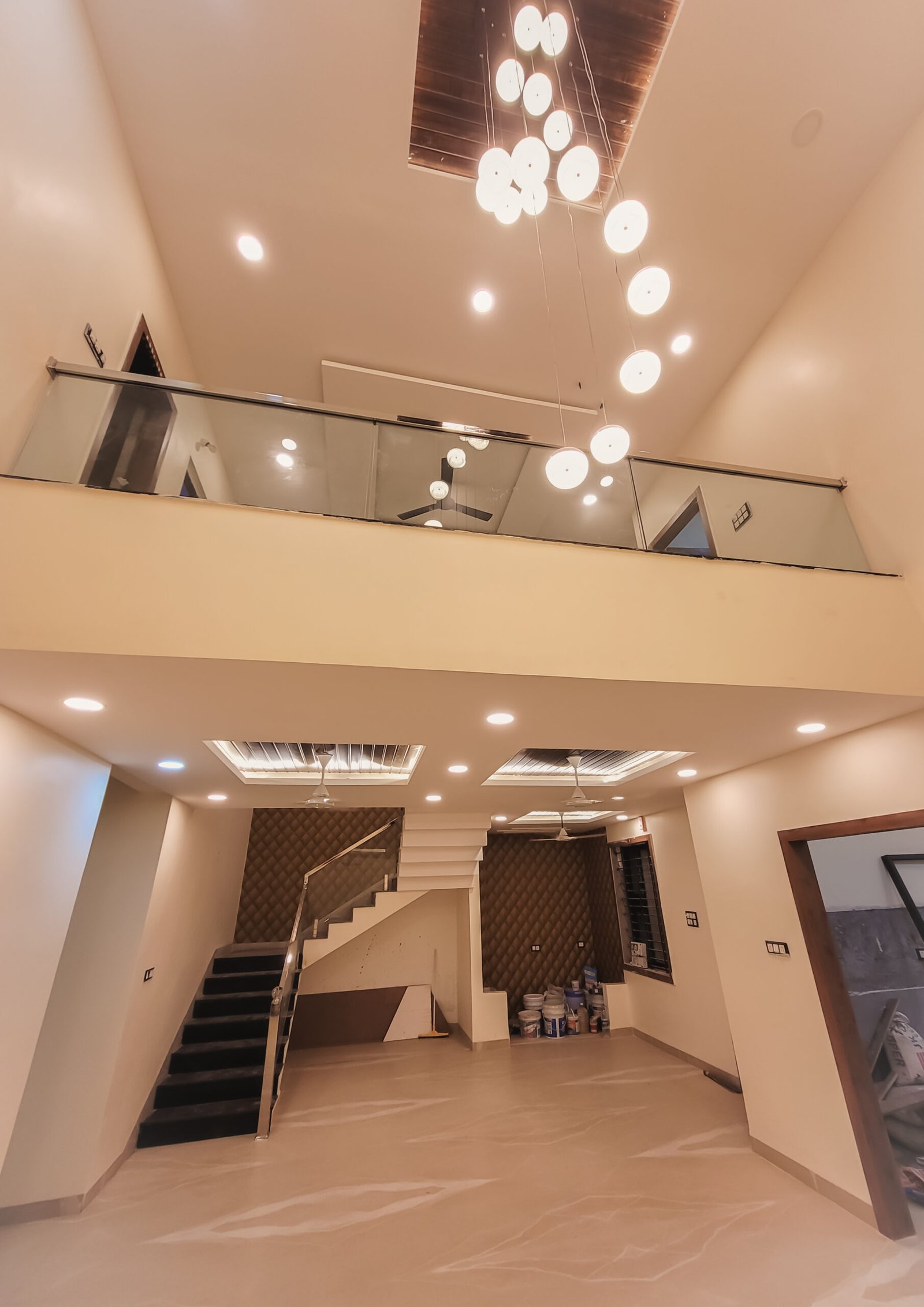 Despite the moderate plot size, every square foot has been intelligently utilized to maximize space, ventilation, and natural lighting. The integration of smart home systems, eco-friendly elements, premium flooring, concealed wiring, and high-end finishes enhances comfort and sustainability.